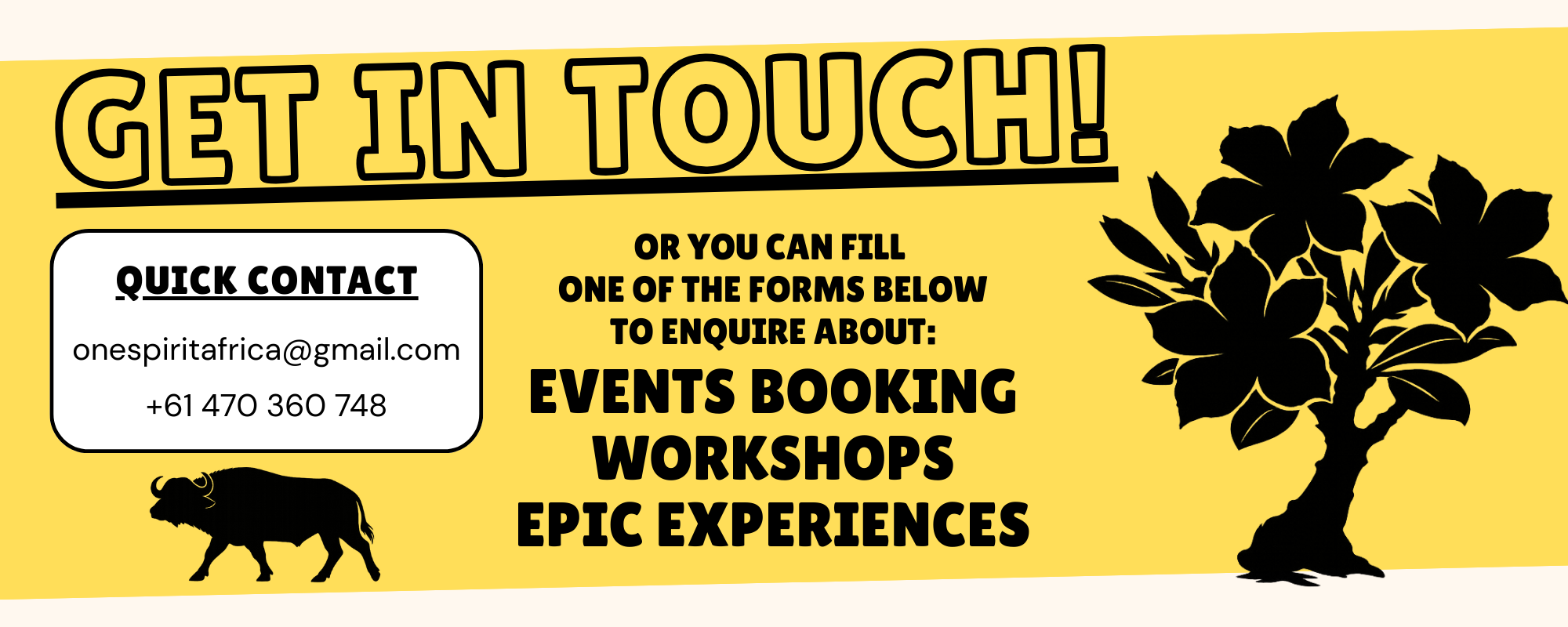 Users may complete this form in order to get a free quote for a workshop. Offers include: - One-on-one, Small Group (10) - Drumming Only, Dance Only, Drumming & Dance - Metropolitan VIC (Melbourne & Geelong), Regional VIC & Interstate - One-off or Perpetual